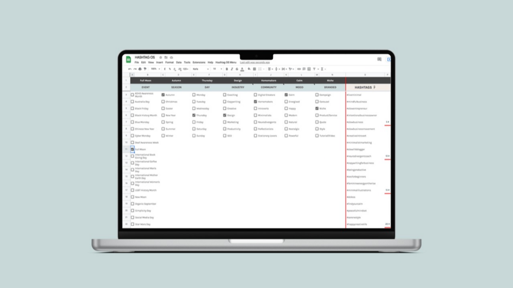 I had the same feelings about posting on Instagram. Hashtags felt like such a time-suck, but, as a self-proclaimed perfectionist, I didn't want to waste the effort of creating content by using the wrong hashtags or not using them at all. I wanted the confidence to know that what I used would work. So, I created this intuitive Google Sheet to make posting on Instagram quicker, easier, and more effective!